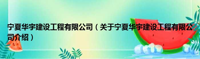 寧夏華宇建設工程有限公司(關于寧夏華宇建設工程有限公司介紹)