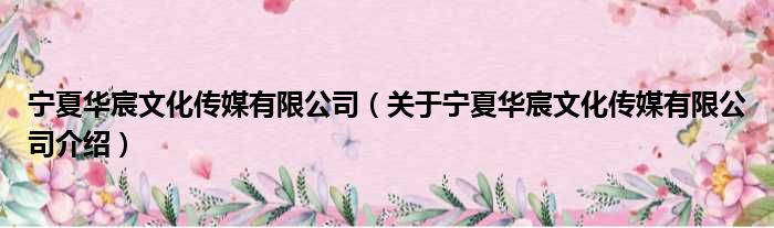 寧夏華宸文化傳媒有限公司(關于寧夏華宸文化傳媒有限公司介紹)