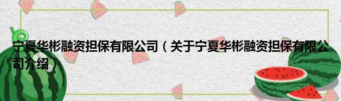 寧夏華彬融資擔保有限公司(關于寧夏華彬融資擔保有限公司介紹)