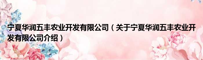 寧夏華潤五豐農業開發有限公司(關于寧夏華潤五豐農業開發有限公司介紹)