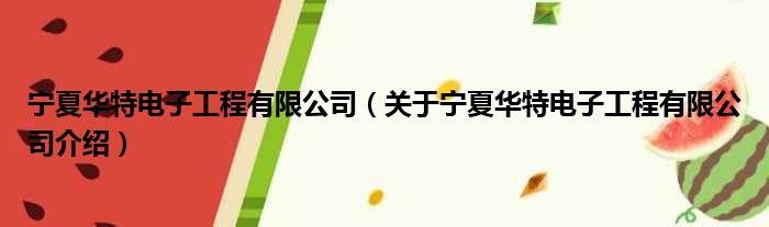 寧夏華特電子工程有限公司(關于寧夏華特電子工程有限公司介紹)