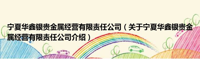 寧夏華鑫銀貴金屬經營有限責任公司(關于寧夏華鑫銀貴金屬經營有限責任公司介紹)