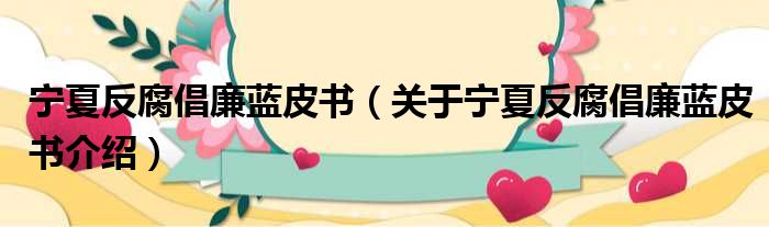 寧夏反腐倡廉藍皮書(關于寧夏反腐倡廉藍皮書介紹)