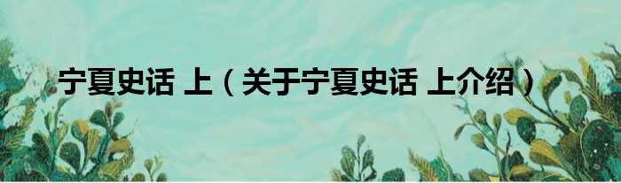 大家好,小耀來為大家解答以上的問題。寧夏史話 上,關于寧夏史話 上介紹這個很多人還不知道,現在讓我們一起來看看吧!