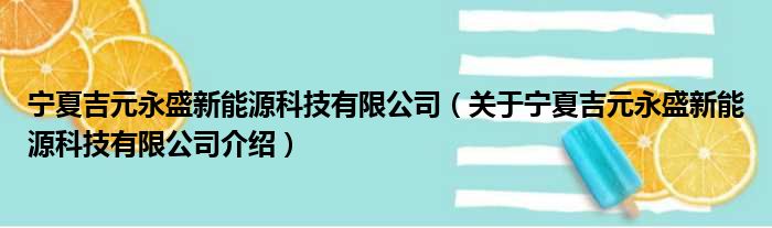 寧夏吉元永盛新能源科技有限公司(關于寧夏吉元永盛新能源科技有限公司介紹)