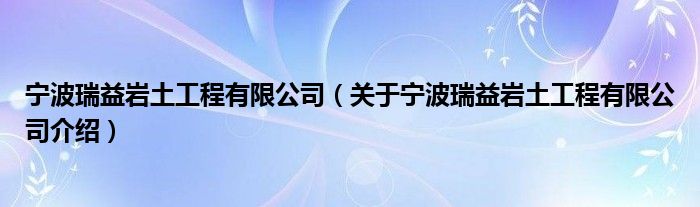 寧波瑞益巖土工程有限公司(關于寧波瑞益巖土工程有限公司介紹)