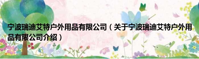 寧波瑞迪艾特戶外用品有限公司(關于寧波瑞迪艾特戶外用品有限公司介紹)