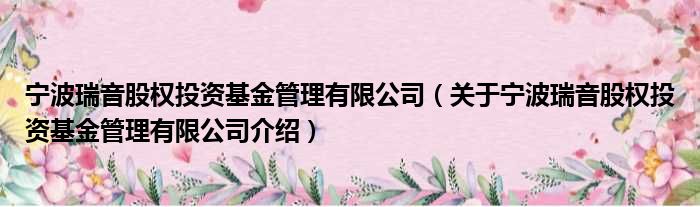 寧波瑞音股權投資基金管理有限公司(關于寧波瑞音股權投資基金管理有限公司介紹)