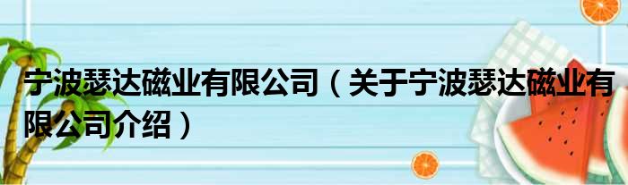 寧波瑟達磁業有限公司(關于寧波瑟達磁業有限公司介紹)