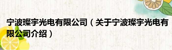 寧波璨宇光電有限公司(關于寧波璨宇光電有限公司介紹)
