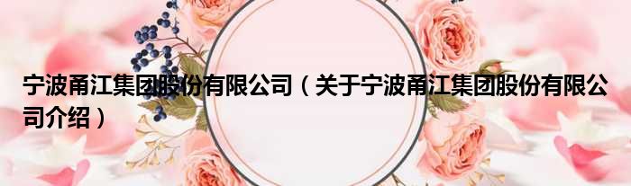 寧波甬江集團股份有限公司(關于寧波甬江集團股份有限公司介紹)