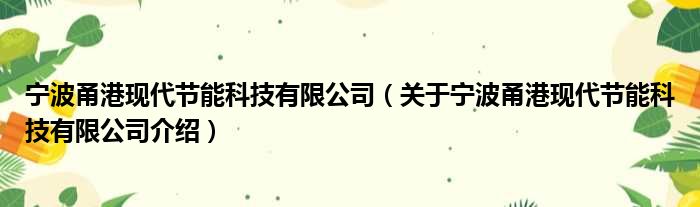 寧波甬港現代節能科技有限公司(關于寧波甬港現代節能科技有限公司介紹)