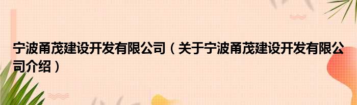 寧波甬茂建設開發有限公司(關于寧波甬茂建設開發有限公司介紹)