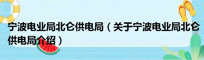 寧波電業局北侖供電局(關于寧波電業局北侖供電局介紹)