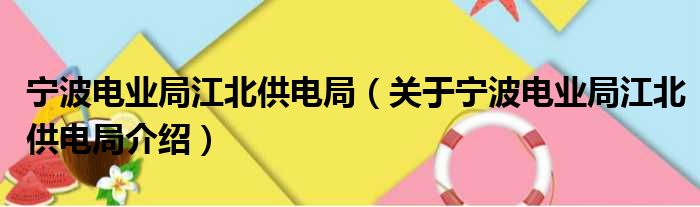 寧波電業局江北供電局(關于寧波電業局江北供電局介紹)