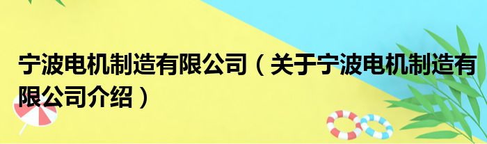 寧波電機制造有限公司(關于寧波電機制造有限公司介紹)