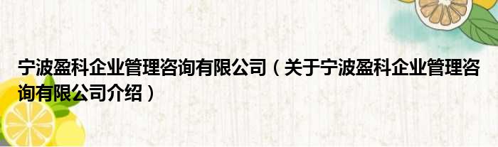 寧波盈科企業管理咨詢有限公司(關于寧波盈科企業管理咨詢有限公司介紹)