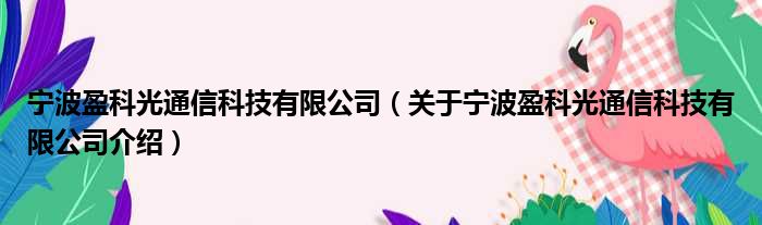 寧波盈科光通信科技有限公司(關于寧波盈科光通信科技有限公司介紹)