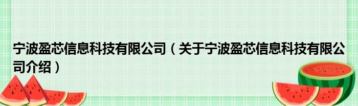 寧波盈芯信息科技有限公司(關于寧波盈芯信息科技有限公司介紹)