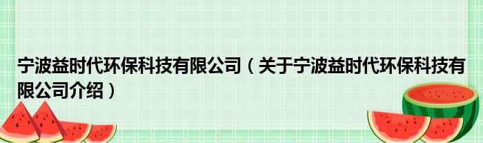 寧波益時代環保科技有限公司(關于寧波益時代環保科技有限公司介紹)
