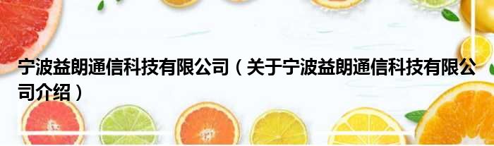 寧波益朗通信科技有限公司(關于寧波益朗通信科技有限公司介紹)