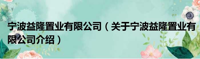 寧波益隆置業有限公司(關于寧波益隆置業有限公司介紹)