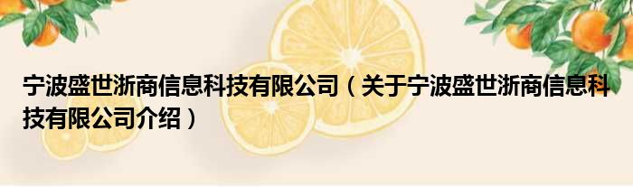 寧波盛世浙商信息科技有限公司(關于寧波盛世浙商信息科技有限公司介紹)