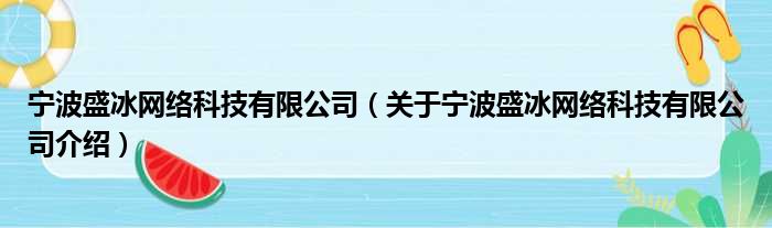 寧波盛冰網絡科技有限公司(關于寧波盛冰網絡科技有限公司介紹)