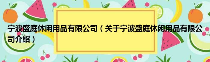 寧波盛庭休閑用品有限公司(關于寧波盛庭休閑用品有限公司介紹)