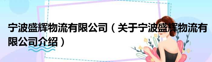 寧波盛輝物流有限公司(關于寧波盛輝物流有限公司介紹)