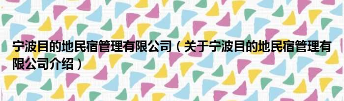 寧波目的地民宿管理有限公司(關于寧波目的地民宿管理有限公司介紹)