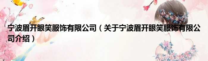寧波眉開眼笑服飾有限公司(關于寧波眉開眼笑服飾有限公司介紹)
