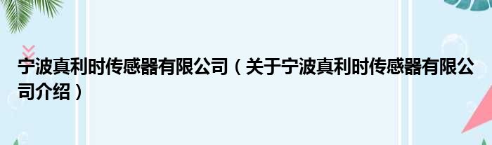 寧波真利時傳感器有限公司(關于寧波真利時傳感器有限公司介紹)