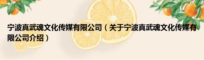 寧波真武魂文化傳媒有限公司(關于寧波真武魂文化傳媒有限公司介紹)