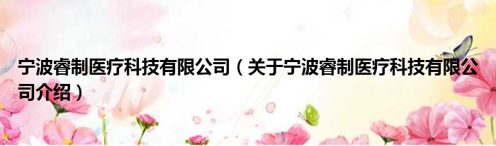 寧波睿制醫療科技有限公司(關于寧波睿制醫療科技有限公司介紹)