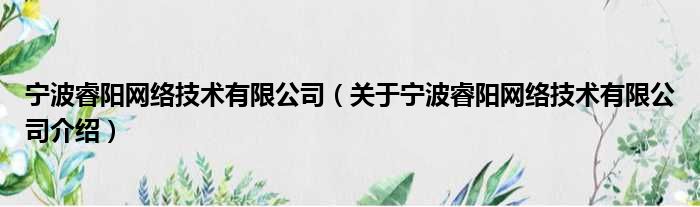 寧波睿陽網絡技術有限公司(關于寧波睿陽網絡技術有限公司介紹)