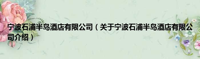 寧波石浦半島酒店有限公司(關于寧波石浦半島酒店有限公司介紹)