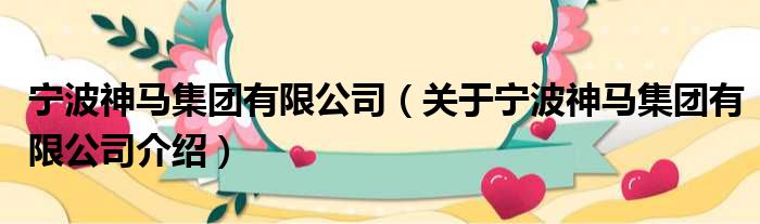 寧波神馬集團有限公司(關于寧波神馬集團有限公司介紹)