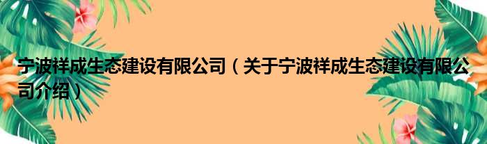 寧波祥成生態建設有限公司(關于寧波祥成生態建設有限公司介紹)