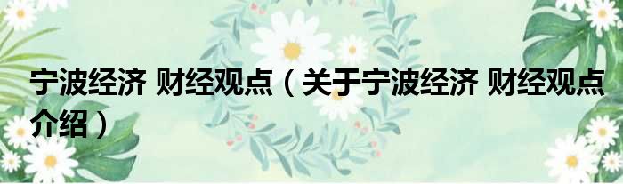 導讀 大家好,小耀來為大家解答以上的問題。寧波經濟 財經觀點,關于寧波經濟 財經觀點介紹這個很多人還不知道,現在讓我們一起來看看吧!1、