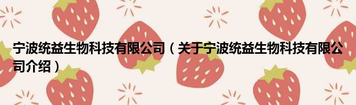 寧波統益生物科技有限公司(關于寧波統益生物科技有限公司介紹)