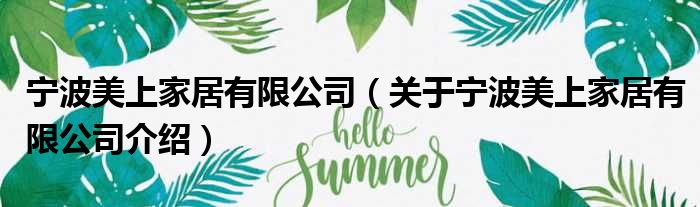 寧波美上家居有限公司(關于寧波美上家居有限公司介紹)