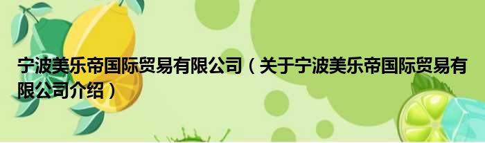 寧波美樂帝國際貿易有限公司(關于寧波美樂帝國際貿易有限公司介紹)