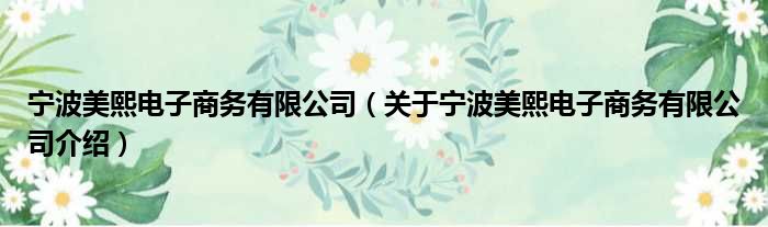 寧波美熙電子商務有限公司(關于寧波美熙電子商務有限公司介紹)
