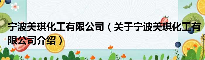 寧波美琪化工有限公司(關于寧波美琪化工有限公司介紹)