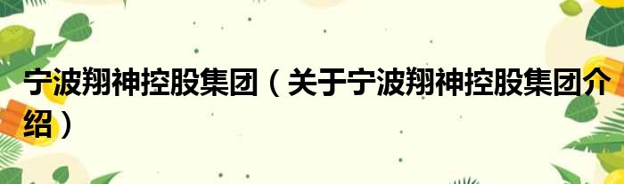 寧波翔神控股集團(關于寧波翔神控股集團介紹)