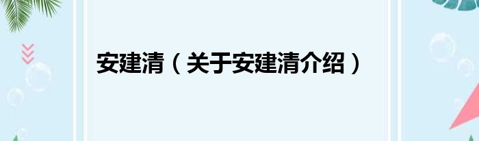 大家好,小耀來為大家解答以上的問題。安建清,關于安建清介紹這個很多人還不知道,現在讓我們一起來看看吧!