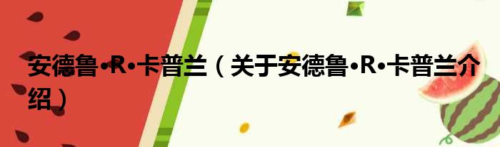 大家好,小耀來為大家解答以上的問題。安德魯·R·卡普蘭,關于安德魯·R·卡普蘭介紹這個很多人還不知道,現在讓我們一起來看看吧!