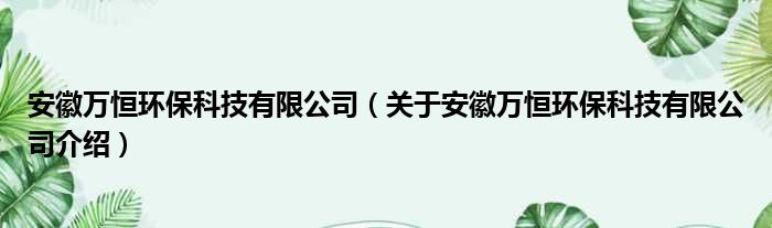 安徽萬恒環保科技有限公司(關于安徽萬恒環保科技有限公司介紹)