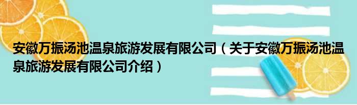安徽萬振湯池溫泉旅游發展有限公司(關于安徽萬振湯池溫泉旅游發展有限公司介紹)